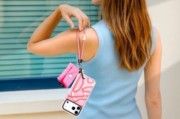 A placa traseira removível permite que você personalize seu visual em segundos — ideal para trocar de estilo de acordo com seu humor ou roupa. Um bolso para moedas integrado adiciona praticidade e um toque divertido, enquanto a alça de pulso combinando oferece conforto e segurança extra para usar o acessório em qualquer lugar.